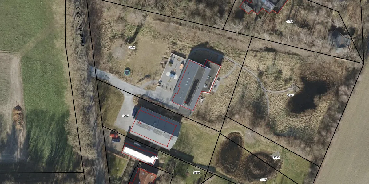 Het perceel waarop Oude Deventerweg 2-b staat heeft een oppervlakte van 3950 m². Dit is een zeer groot perceel. De perceeloppervlakte wordt geregistreerd door het Kadaster. Gedetailleerde informatie over de maten van dit perceel kunt u vinden in het rapport Kadastrale kaart met maatvoering van Oude Deventerweg 2-b.