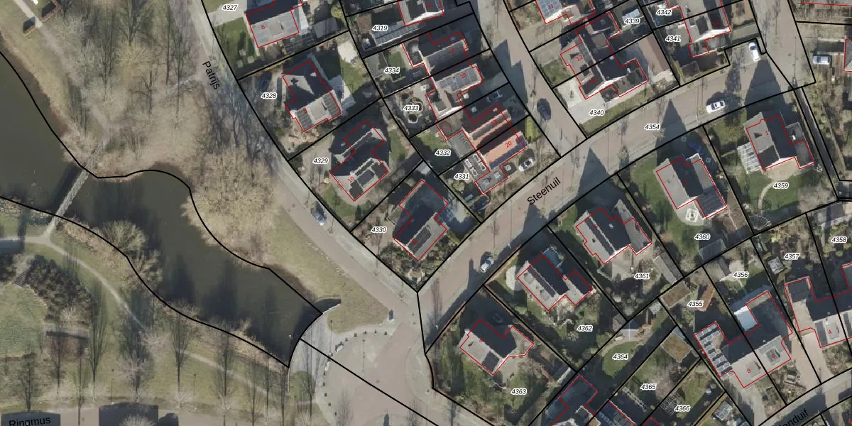 Gebruik de zoekbalk of klik op een perceel voor informatie over de adressen binnen dit perceel.