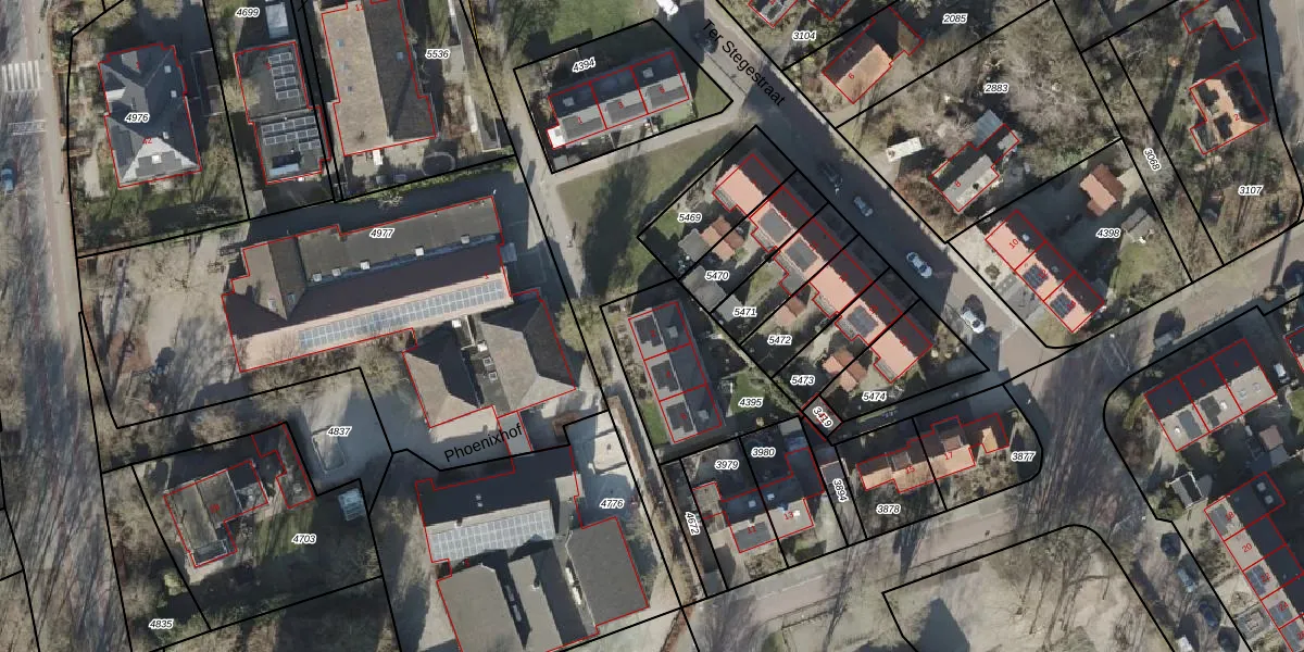 Het perceel waarop Phoenixhof 2 staat heeft een oppervlakte van 465 m². Dit is een groot perceel. De perceeloppervlakte wordt geregistreerd door het Kadaster. Gedetailleerde informatie over de maten van dit perceel kunt u vinden in het rapport Kadastrale kaart met maatvoering van Phoenixhof 2.
