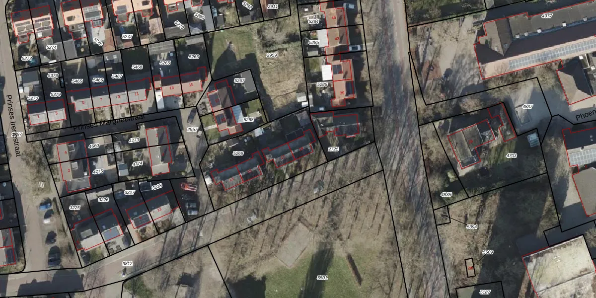 Het perceel waarop Prinses Beatrixstraat 19 staat heeft een oppervlakte van 807 m². Dit is een groot perceel. De perceeloppervlakte wordt geregistreerd door het Kadaster. Gedetailleerde informatie over de maten van dit perceel kunt u vinden in het rapport Kadastrale kaart met maatvoering van Prinses Beatrixstraat 19.