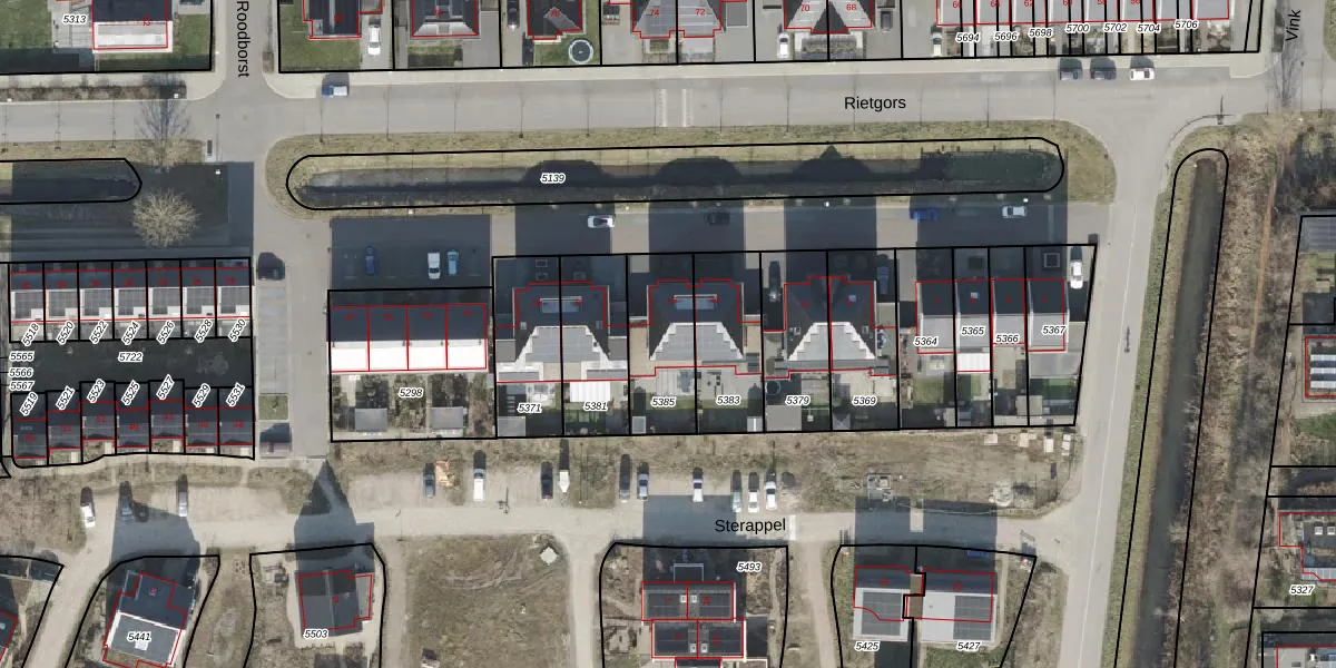 Gebruik de zoekbalk of klik op een perceel voor informatie over de adressen binnen dit perceel.