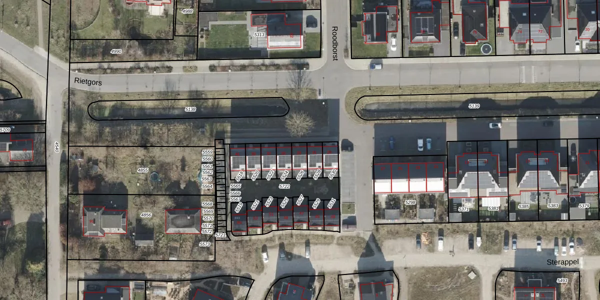 Het perceel waarop Rietgors 33 staat heeft een oppervlakte van 61 m². Dit is een klein perceel. De perceeloppervlakte wordt geregistreerd door het Kadaster. Gedetailleerde informatie over de maten van dit perceel kunt u vinden in het rapport Kadastrale kaart met maatvoering van Rietgors 33.