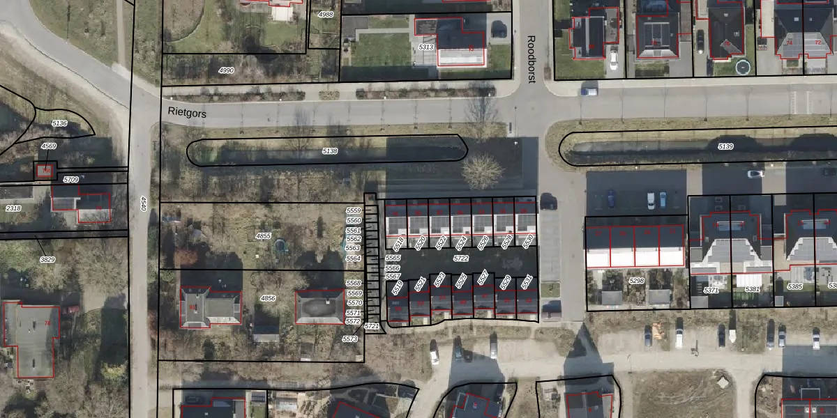 Gebruik de zoekbalk of klik op een perceel voor informatie over de adressen binnen dit perceel.