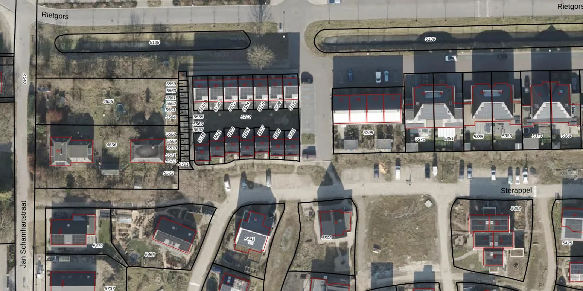 Het perceel waarop Rietgors 43 staat heeft een oppervlakte van 55 m². Dit is een klein perceel. De perceeloppervlakte wordt geregistreerd door het Kadaster. Gedetailleerde informatie over de maten van dit perceel kunt u vinden in het rapport Kadastrale kaart met maatvoering van Rietgors 43.