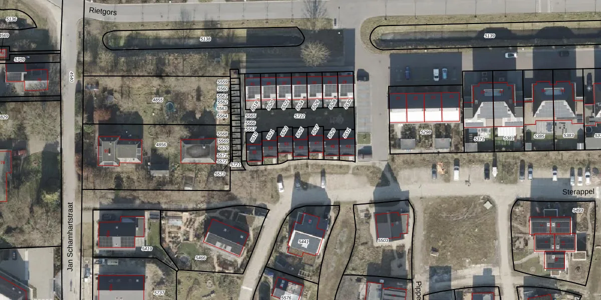 Het perceel waarop Rietgors 49 staat heeft een oppervlakte van 54 m². Dit is een klein perceel. De perceeloppervlakte wordt geregistreerd door het Kadaster. Gedetailleerde informatie over de maten van dit perceel kunt u vinden in het rapport Kadastrale kaart met maatvoering van Rietgors 49.