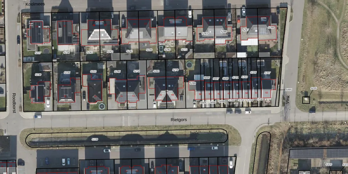 Het perceel waarop Rietgors 68 staat heeft een oppervlakte van 313 m². Dit is een groot perceel. De perceeloppervlakte wordt geregistreerd door het Kadaster. Gedetailleerde informatie over de maten van dit perceel kunt u vinden in het rapport Kadastrale kaart met maatvoering van Rietgors 68.