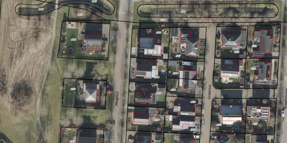 Gebruik de zoekbalk of klik op een perceel voor informatie over de adressen binnen dit perceel.