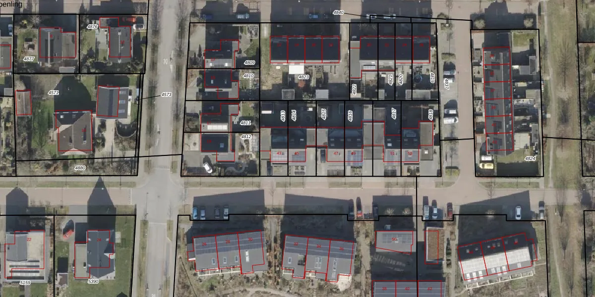 Gebruik de zoekbalk of klik op een perceel voor informatie over de adressen binnen dit perceel.