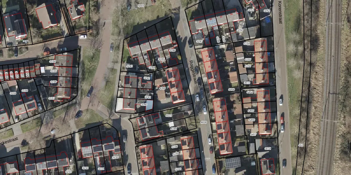 Het perceel waarop Roggestraat 13 staat heeft een oppervlakte van 457 m². Dit is een groot perceel. De perceeloppervlakte wordt geregistreerd door het Kadaster. Gedetailleerde informatie over de maten van dit perceel kunt u vinden in het rapport Kadastrale kaart met maatvoering van Roggestraat 13.