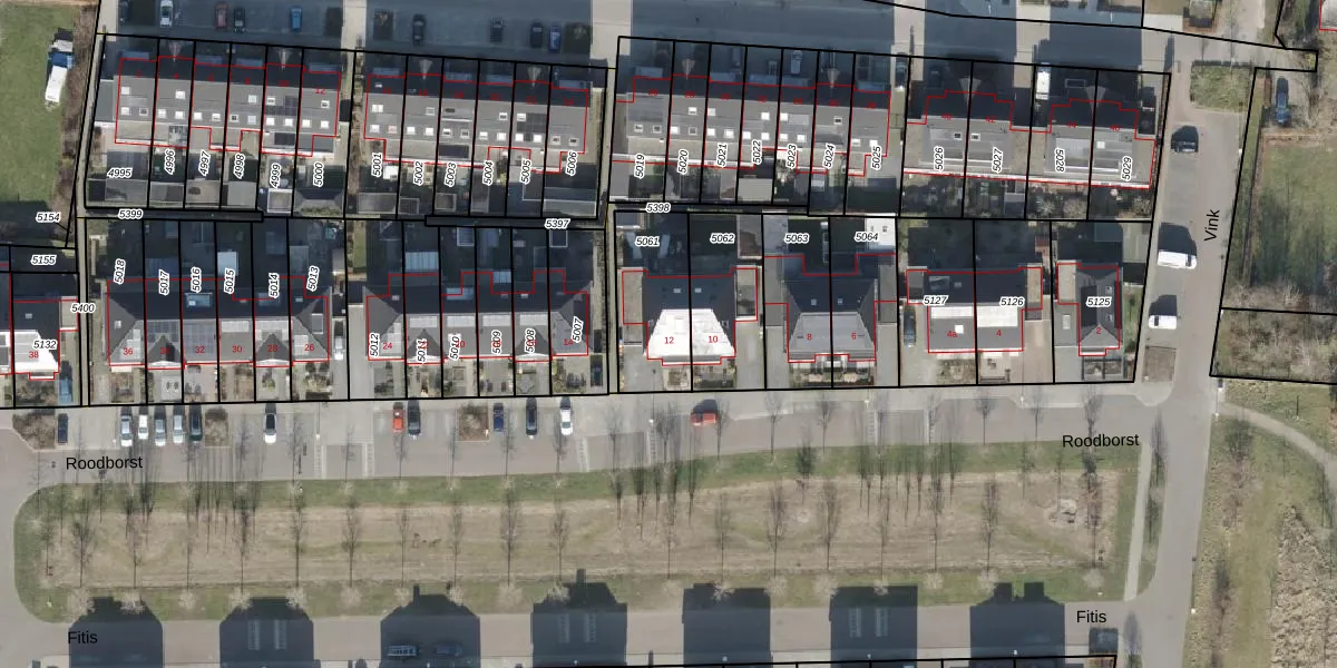 Het perceel waarop Roodborst 12 staat heeft een oppervlakte van 297 m². Dit is een middelgroot perceel. De perceeloppervlakte wordt geregistreerd door het Kadaster. Gedetailleerde informatie over de maten van dit perceel kunt u vinden in het rapport Kadastrale kaart met maatvoering van Roodborst 12.