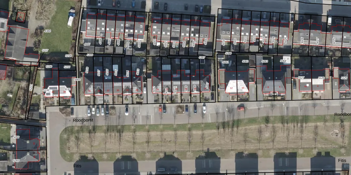 Gebruik de zoekbalk of klik op een perceel voor informatie over de adressen binnen dit perceel.