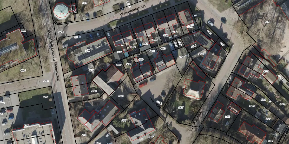 Gebruik de zoekbalk of klik op een perceel voor informatie over de adressen binnen dit perceel.