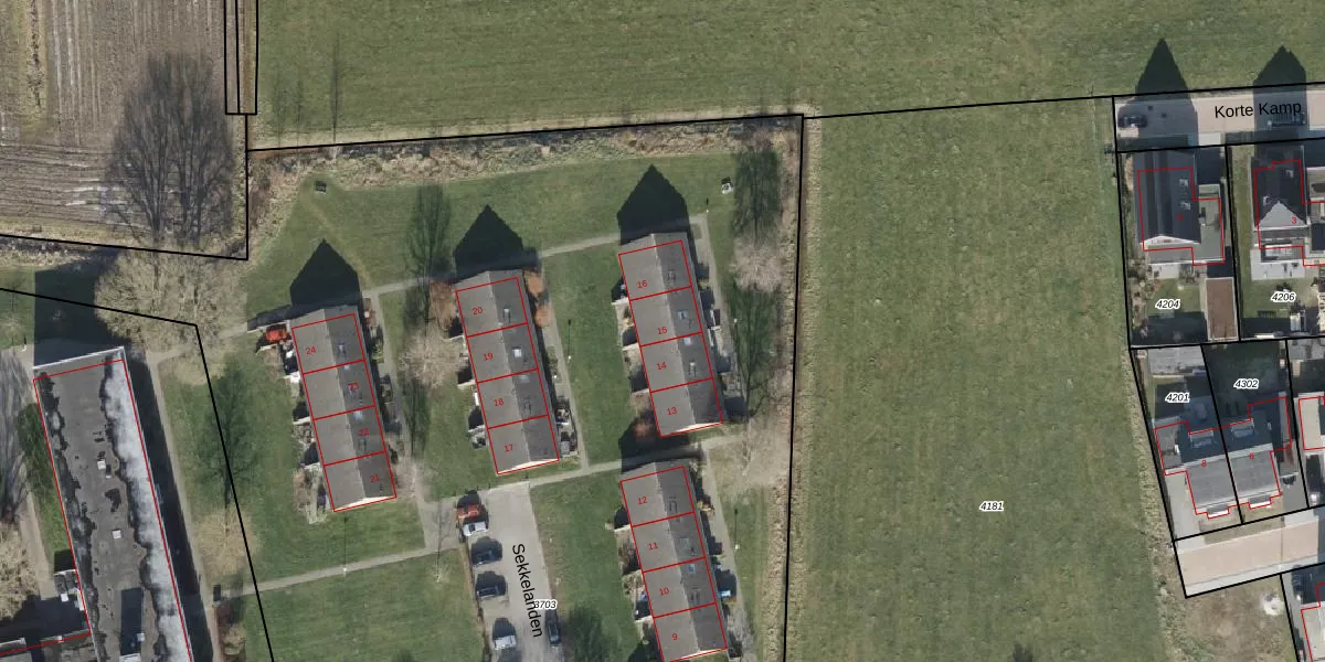 Sekkelanden 15 is gelegen op kadastraal perceel OLS00E3703. Deze kadastrale aanduiding is uniek en wordt gebruikt door het Kadaster om eigendomsrechten en andere zakelijke rechten vast te leggen. Het perceel maakt onderdeel uit van de kadastrale gemeente Olst.