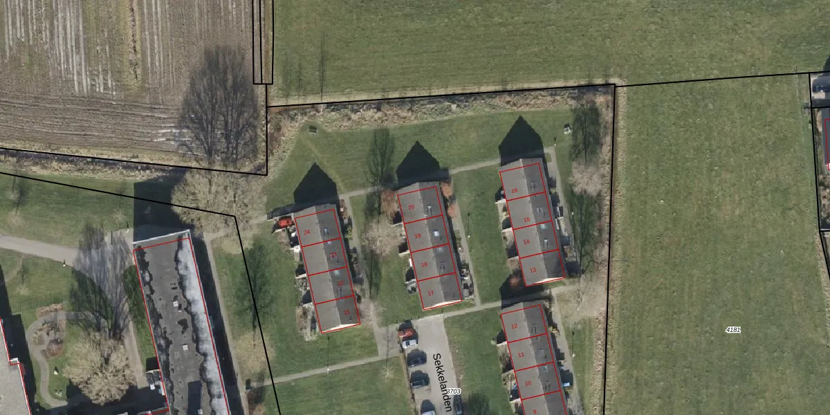 Het perceel waarop Sekkelanden 20 staat heeft een oppervlakte van 1,2 ha. Dit is een zeer groot perceel. De perceeloppervlakte wordt geregistreerd door het Kadaster. Gedetailleerde informatie over de maten van dit perceel kunt u vinden in het rapport Kadastrale kaart met maatvoering van Sekkelanden 20.