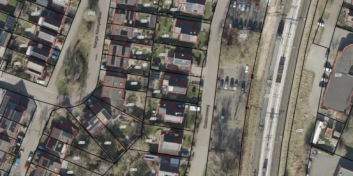 Het perceel waarop Stationsweg 28 staat heeft een oppervlakte van 455 m². Dit is een groot perceel. De perceeloppervlakte wordt geregistreerd door het Kadaster. Gedetailleerde informatie over de maten van dit perceel kunt u vinden in het rapport Kadastrale kaart met maatvoering van Stationsweg 28.