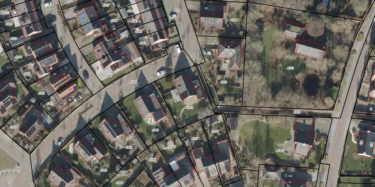 Het perceel waarop Steenuil 1 staat heeft een oppervlakte van 632 m². Dit is een groot perceel. De perceeloppervlakte wordt geregistreerd door het Kadaster. Gedetailleerde informatie over de maten van dit perceel kunt u vinden in het rapport Kadastrale kaart met maatvoering van Steenuil 1.
