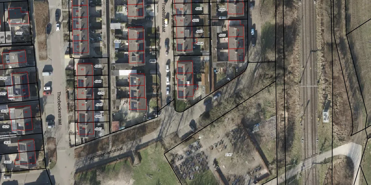 Het perceel waarop Troelstrastraat 2 staat heeft een oppervlakte van 1203 m². Dit is een zeer groot perceel. De perceeloppervlakte wordt geregistreerd door het Kadaster. Gedetailleerde informatie over de maten van dit perceel kunt u vinden in het rapport Kadastrale kaart met maatvoering van Troelstrastraat 2.