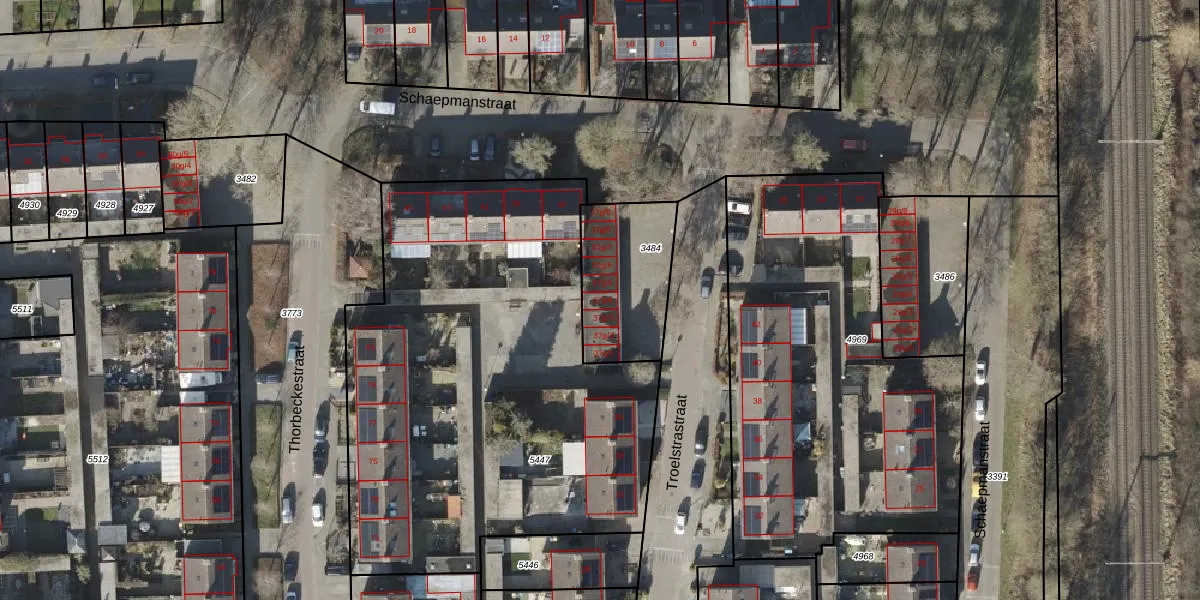 Het perceel waarop Troelstrastraat 37-g-4 staat heeft een oppervlakte van 390 m². Dit is een groot perceel. De perceeloppervlakte wordt geregistreerd door het Kadaster. Gedetailleerde informatie over de maten van dit perceel kunt u vinden in het rapport Kadastrale kaart met maatvoering van Troelstrastraat 37-g-4.