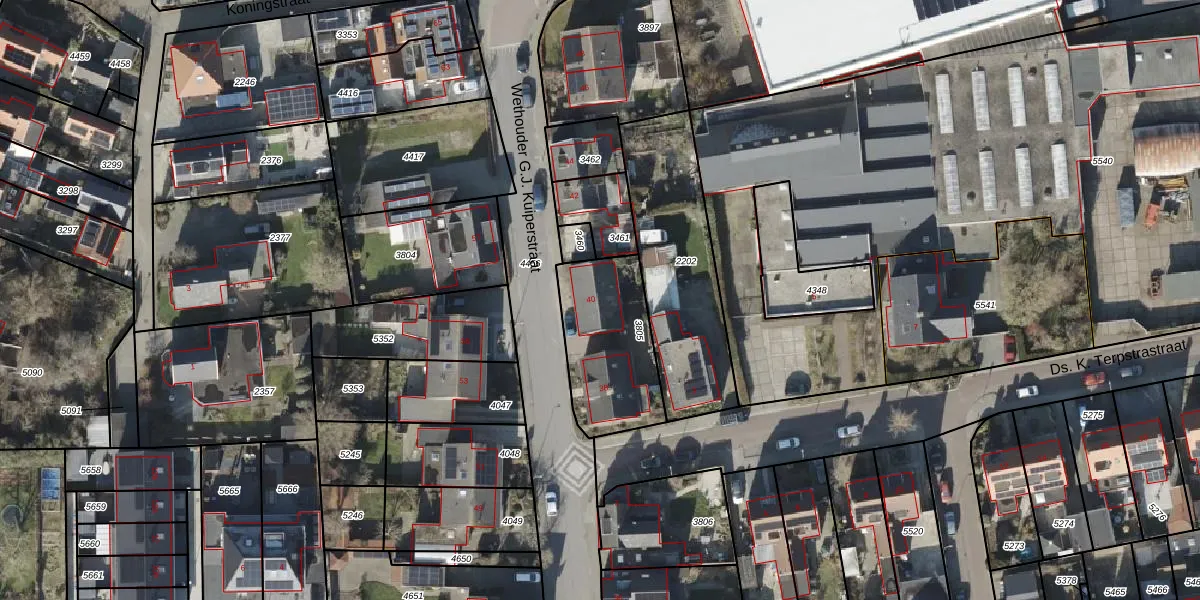 Het perceel waarop Wethouder G.J. Kuiperstraat 40 staat heeft een oppervlakte van 418 m². Dit is een groot perceel. De perceeloppervlakte wordt geregistreerd door het Kadaster. Gedetailleerde informatie over de maten van dit perceel kunt u vinden in het rapport Kadastrale kaart met maatvoering van Wethouder G.J. Kuiperstraat 40.