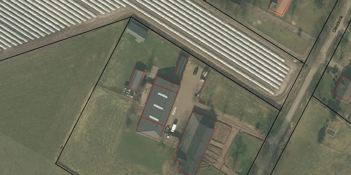 Het perceel waarop Diesdonk 37-a staat heeft een oppervlakte van 9670 m². Dit is een zeer groot perceel. De perceeloppervlakte wordt geregistreerd door het Kadaster. Gedetailleerde informatie over de maten van dit perceel kunt u vinden in het rapport Kadastrale kaart met maatvoering van Diesdonk 37-a.