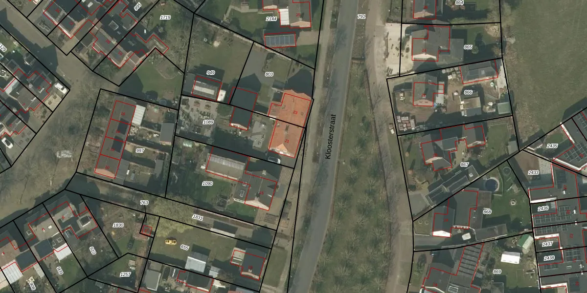 Het perceel waarop Kloosterstraat 21 staat heeft een oppervlakte van 640 m². Dit is een groot perceel. De perceeloppervlakte wordt geregistreerd door het Kadaster. Gedetailleerde informatie over de maten van dit perceel kunt u vinden in het rapport Kadastrale kaart met maatvoering van Kloosterstraat 21.