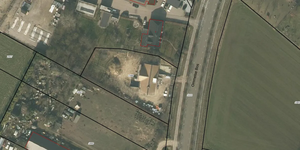 Het perceel waarop Ommelse Bos 1-c staat heeft een oppervlakte van 1955 m². Dit is een zeer groot perceel. De perceeloppervlakte wordt geregistreerd door het Kadaster. Gedetailleerde informatie over de maten van dit perceel kunt u vinden in het rapport Kadastrale kaart met maatvoering van Ommelse Bos 1-c.