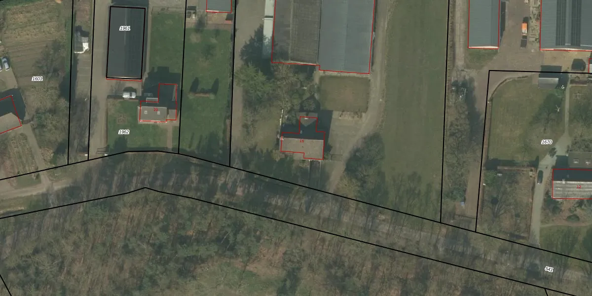 Het perceel waarop Oostappensedijk 16 staat heeft een oppervlakte van 2,1 ha. Dit is een zeer groot perceel. De perceeloppervlakte wordt geregistreerd door het Kadaster. Gedetailleerde informatie over de maten van dit perceel kunt u vinden in het rapport Kadastrale kaart met maatvoering van Oostappensedijk 16.
