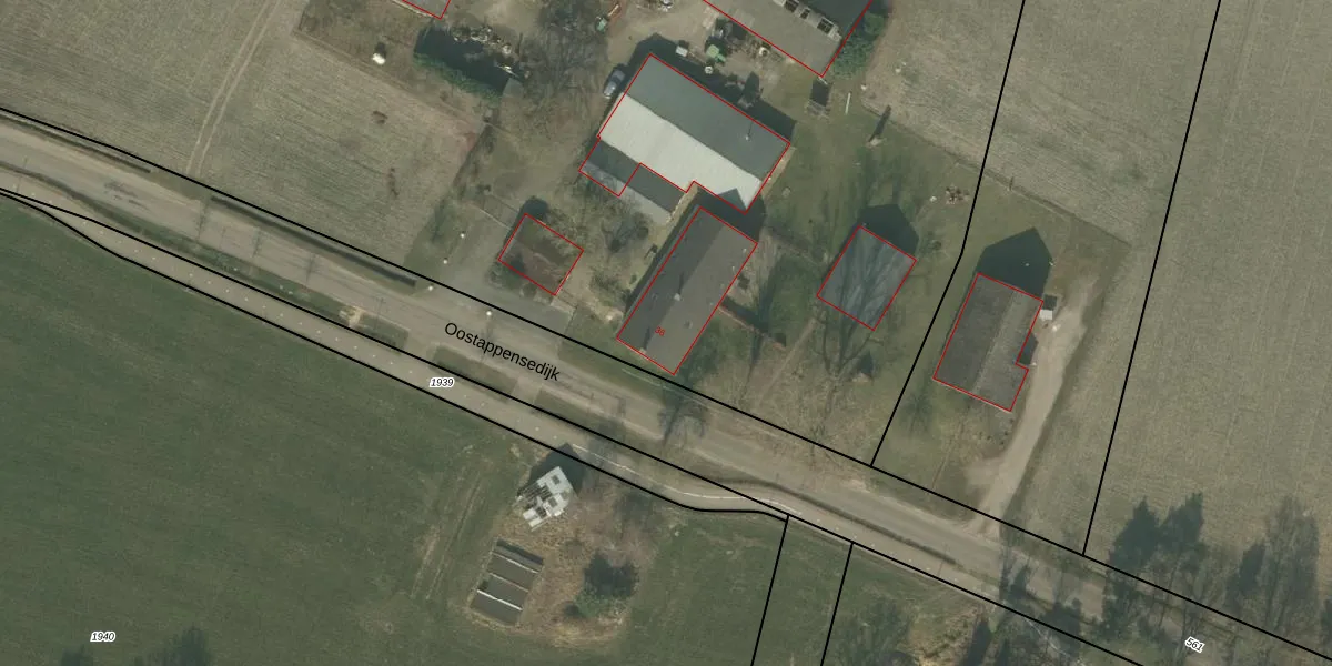 Het perceel waarop Oostappensedijk 36 staat heeft een oppervlakte van 2,6 ha. Dit is een zeer groot perceel. De perceeloppervlakte wordt geregistreerd door het Kadaster. Gedetailleerde informatie over de maten van dit perceel kunt u vinden in het rapport Kadastrale kaart met maatvoering van Oostappensedijk 36.