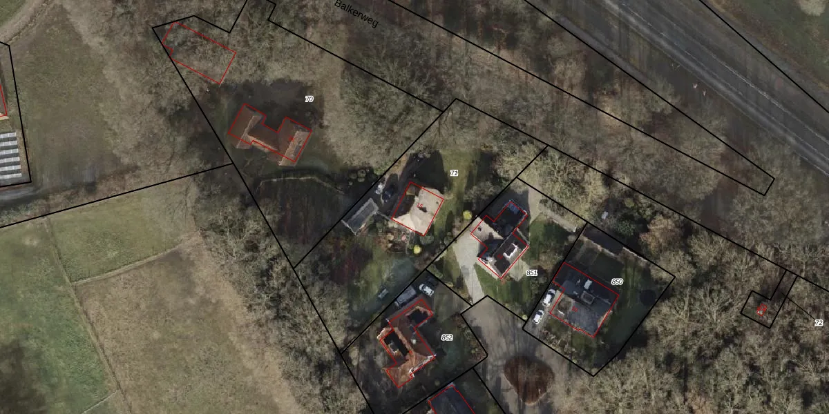Het perceel waarop Balkerweg 15 staat heeft een oppervlakte van 1490 m². Dit is een zeer groot perceel. De perceeloppervlakte wordt geregistreerd door het Kadaster. Gedetailleerde informatie over de maten van dit perceel kunt u vinden in het rapport Kadastrale kaart met maatvoering van Balkerweg 15.