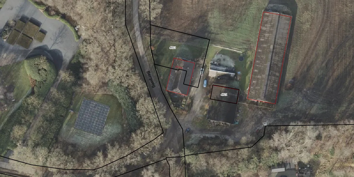 Het perceel waarop Bergweg 22-a staat heeft een oppervlakte van 3,3 ha. Dit is een zeer groot perceel. De perceeloppervlakte wordt geregistreerd door het Kadaster. Gedetailleerde informatie over de maten van dit perceel kunt u vinden in het rapport Kadastrale kaart met maatvoering van Bergweg 22-a.