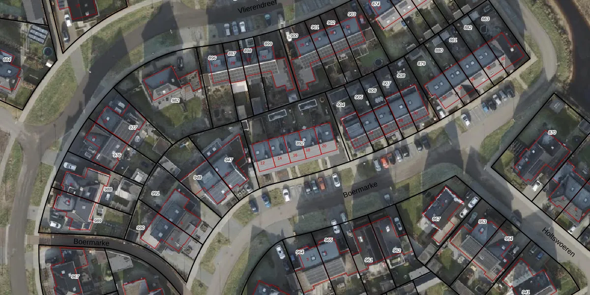 Het perceel waarop Boermarke 16 staat heeft een oppervlakte van 766 m². Dit is een groot perceel. De perceeloppervlakte wordt geregistreerd door het Kadaster. Gedetailleerde informatie over de maten van dit perceel kunt u vinden in het rapport Kadastrale kaart met maatvoering van Boermarke 16.