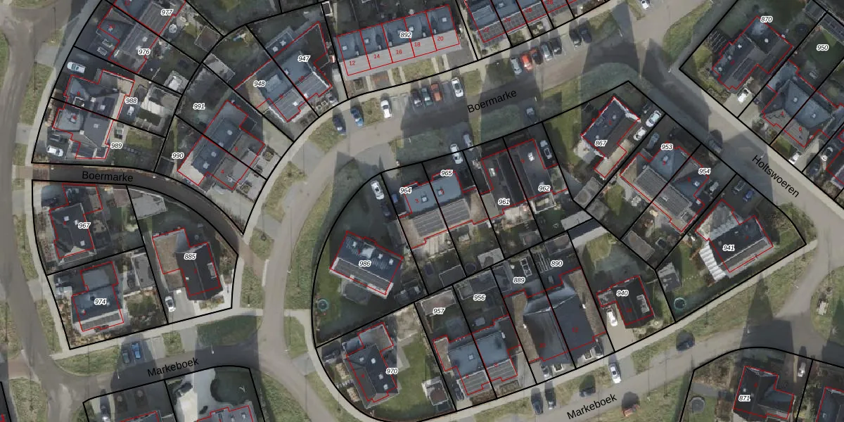 Het perceel waarop Boermarke 3 staat heeft een oppervlakte van 303 m². Dit is een groot perceel. De perceeloppervlakte wordt geregistreerd door het Kadaster. Gedetailleerde informatie over de maten van dit perceel kunt u vinden in het rapport Kadastrale kaart met maatvoering van Boermarke 3.
