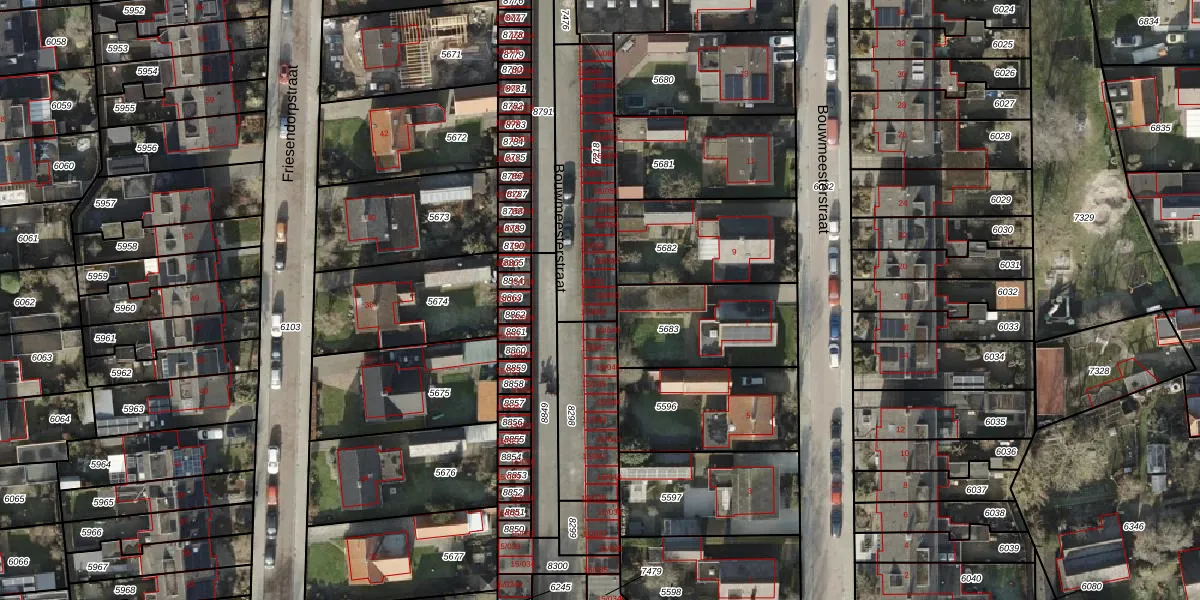 Het perceel waarop Bouwmeesterstraat 15-050 staat heeft een oppervlakte van 460 m². Dit is een groot perceel. De perceeloppervlakte wordt geregistreerd door het Kadaster. Gedetailleerde informatie over de maten van dit perceel kunt u vinden in het rapport Kadastrale kaart met maatvoering van Bouwmeesterstraat 15-050.