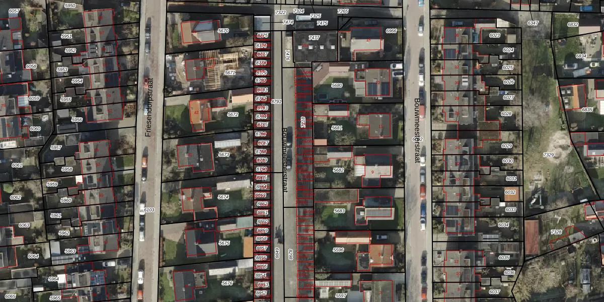 Het perceel waarop Bouwmeesterstraat 15-055 staat heeft een oppervlakte van 460 m². Dit is een groot perceel. De perceeloppervlakte wordt geregistreerd door het Kadaster. Gedetailleerde informatie over de maten van dit perceel kunt u vinden in het rapport Kadastrale kaart met maatvoering van Bouwmeesterstraat 15-055.