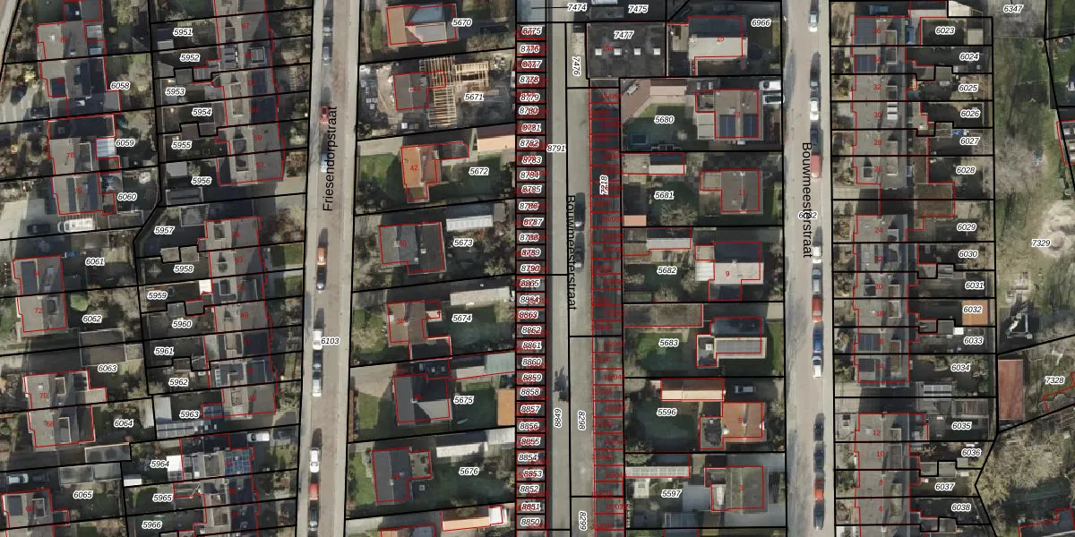Gebruik de zoekbalk of klik op een perceel voor informatie over de adressen binnen dit perceel.