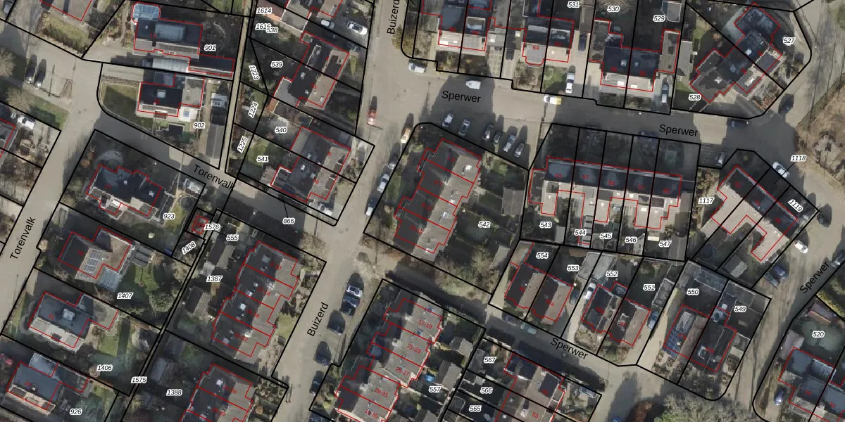 Het perceel waarop Buizerd 11 staat heeft een oppervlakte van 982 m². Dit is een groot perceel. De perceeloppervlakte wordt geregistreerd door het Kadaster. Gedetailleerde informatie over de maten van dit perceel kunt u vinden in het rapport Kadastrale kaart met maatvoering van Buizerd 11.