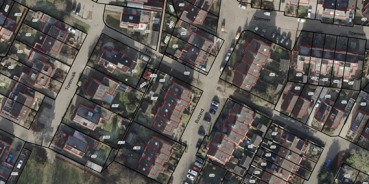 Het perceel waarop Buizerd 8 staat heeft een oppervlakte van 831 m². Dit is een groot perceel. De perceeloppervlakte wordt geregistreerd door het Kadaster. Gedetailleerde informatie over de maten van dit perceel kunt u vinden in het rapport Kadastrale kaart met maatvoering van Buizerd 8.