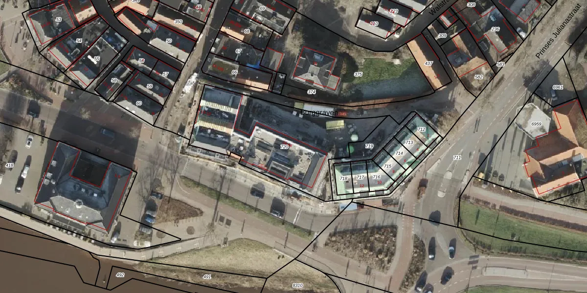 Het perceel waarop Burggraven 18 staat heeft een oppervlakte van 1306 m². Dit is een zeer groot perceel. De perceeloppervlakte wordt geregistreerd door het Kadaster. Gedetailleerde informatie over de maten van dit perceel kunt u vinden in het rapport Kadastrale kaart met maatvoering van Burggraven 18.
