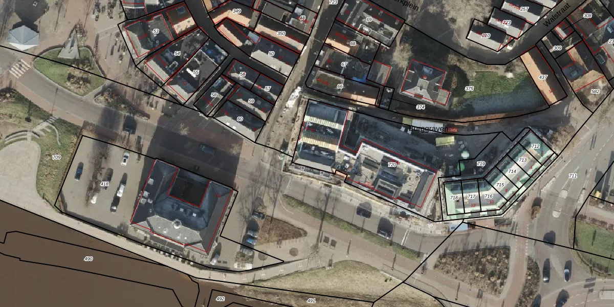Het perceel waarop Burggraven 28 staat heeft een oppervlakte van 1306 m². Dit is een zeer groot perceel. De perceeloppervlakte wordt geregistreerd door het Kadaster. Gedetailleerde informatie over de maten van dit perceel kunt u vinden in het rapport Kadastrale kaart met maatvoering van Burggraven 28.