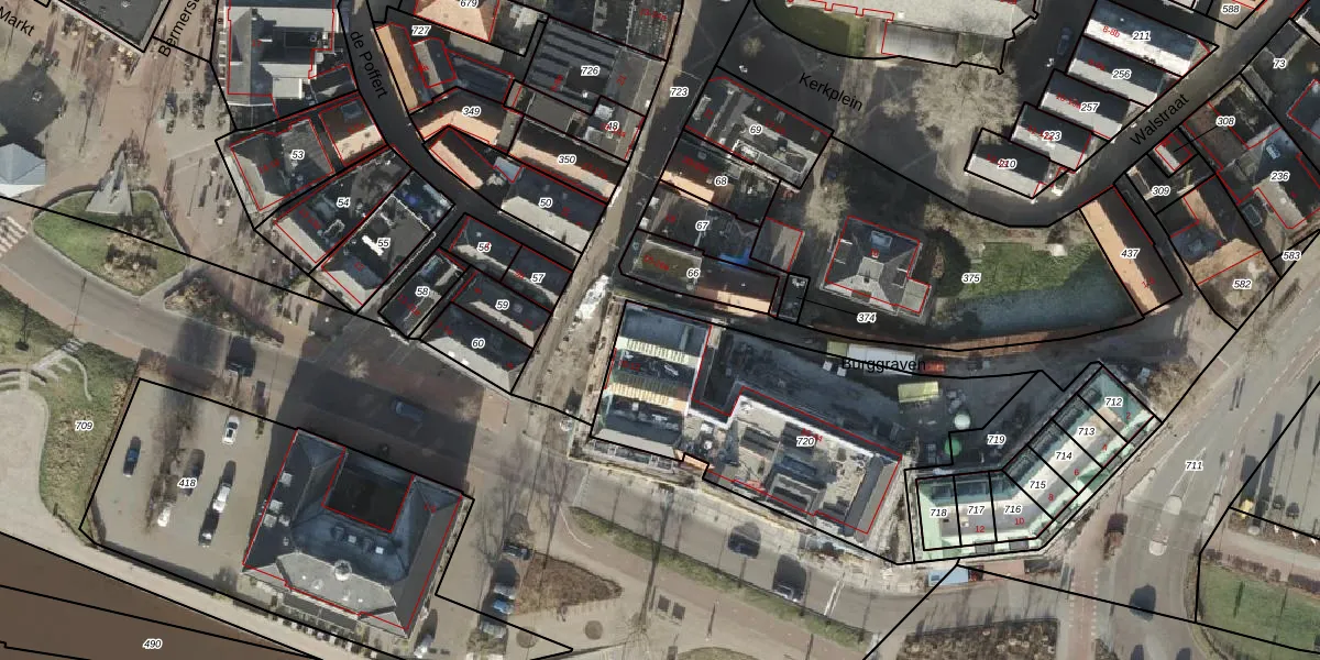 Het perceel waarop Burggraven 44 staat heeft een oppervlakte van 1306 m². Dit is een zeer groot perceel. De perceeloppervlakte wordt geregistreerd door het Kadaster. Gedetailleerde informatie over de maten van dit perceel kunt u vinden in het rapport Kadastrale kaart met maatvoering van Burggraven 44.