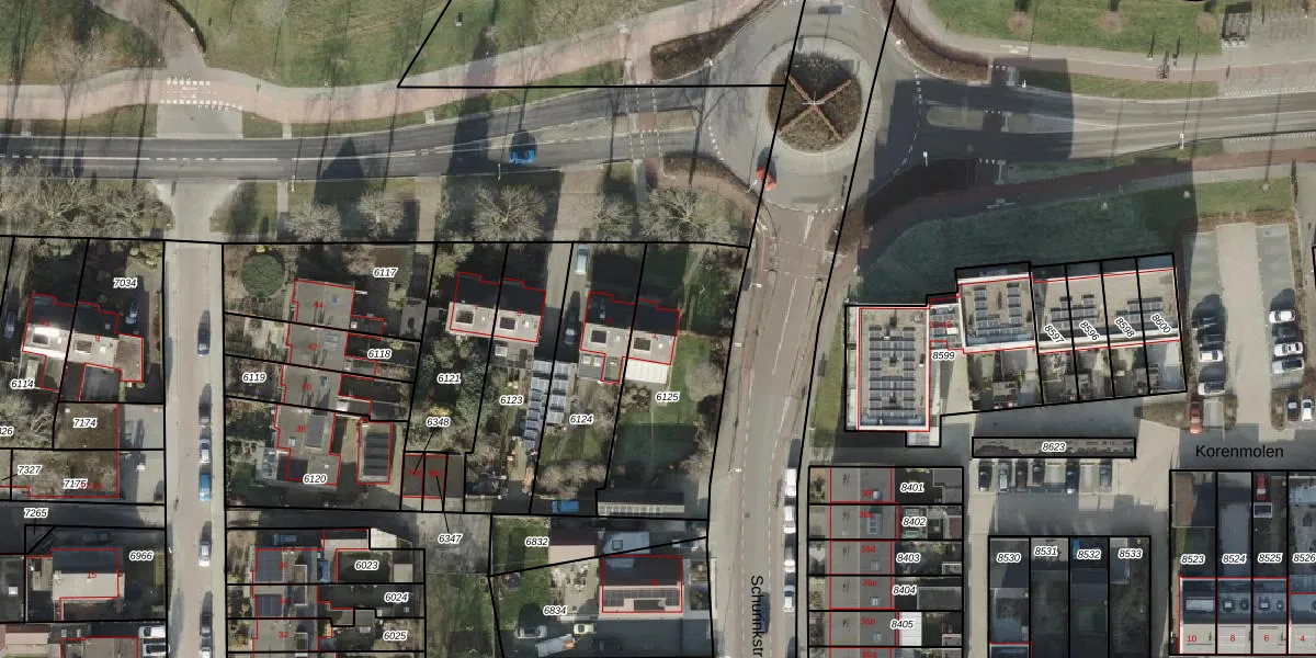 Gebruik de zoekbalk of klik op een perceel voor informatie over de adressen binnen dit perceel.