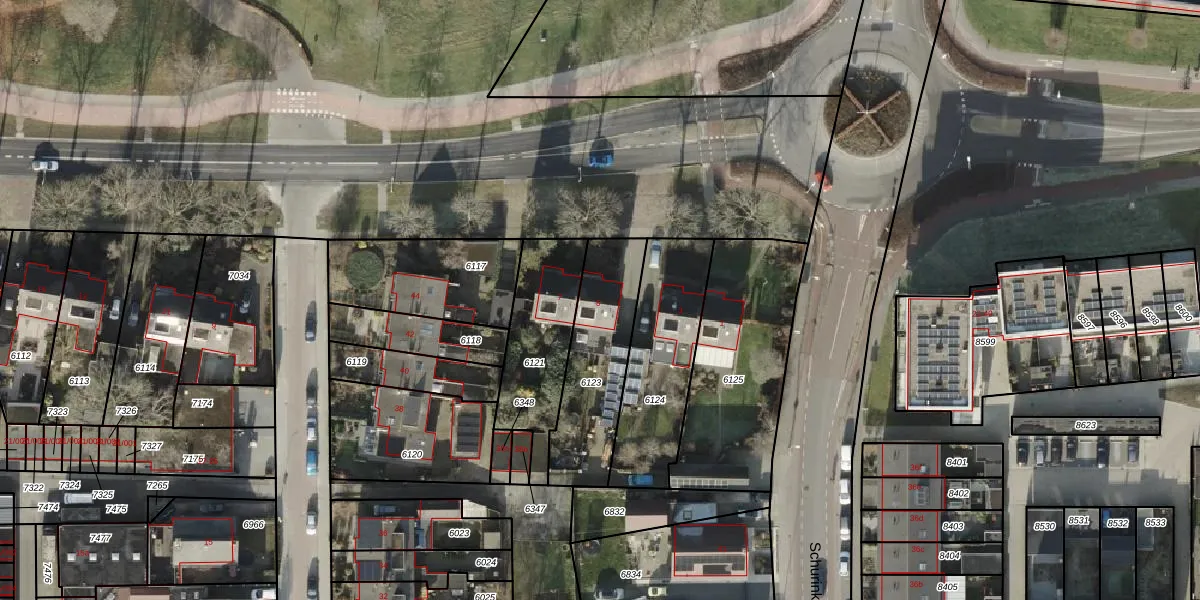 Gebruik de zoekbalk of klik op een perceel voor informatie over de adressen binnen dit perceel.