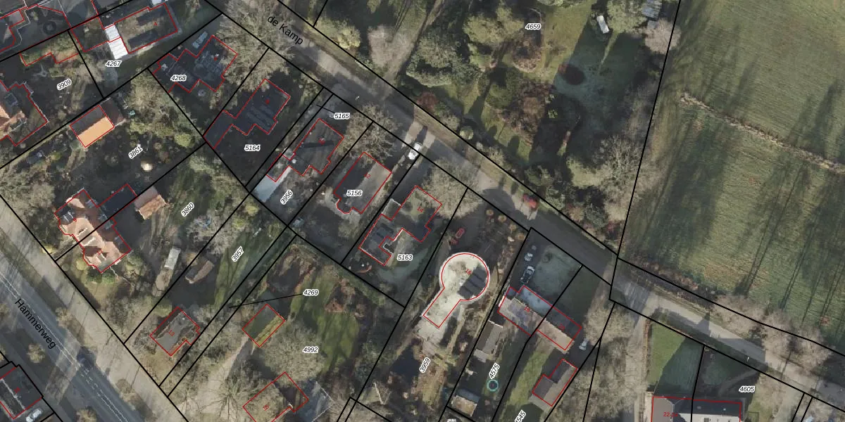de Kamp 14 is gelegen op kadastraal perceel OMN01F5163. Deze kadastrale aanduiding is uniek en wordt gebruikt door het Kadaster om eigendomsrechten en andere zakelijke rechten vast te leggen. Het perceel maakt onderdeel uit van de kadastrale gemeente Ambt-Ommen.