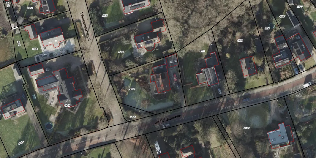 Het perceel waarop de Schammelte 15 staat heeft een oppervlakte van 1285 m². Dit is een zeer groot perceel. De perceeloppervlakte wordt geregistreerd door het Kadaster. Gedetailleerde informatie over de maten van dit perceel kunt u vinden in het rapport Kadastrale kaart met maatvoering van de Schammelte 15.