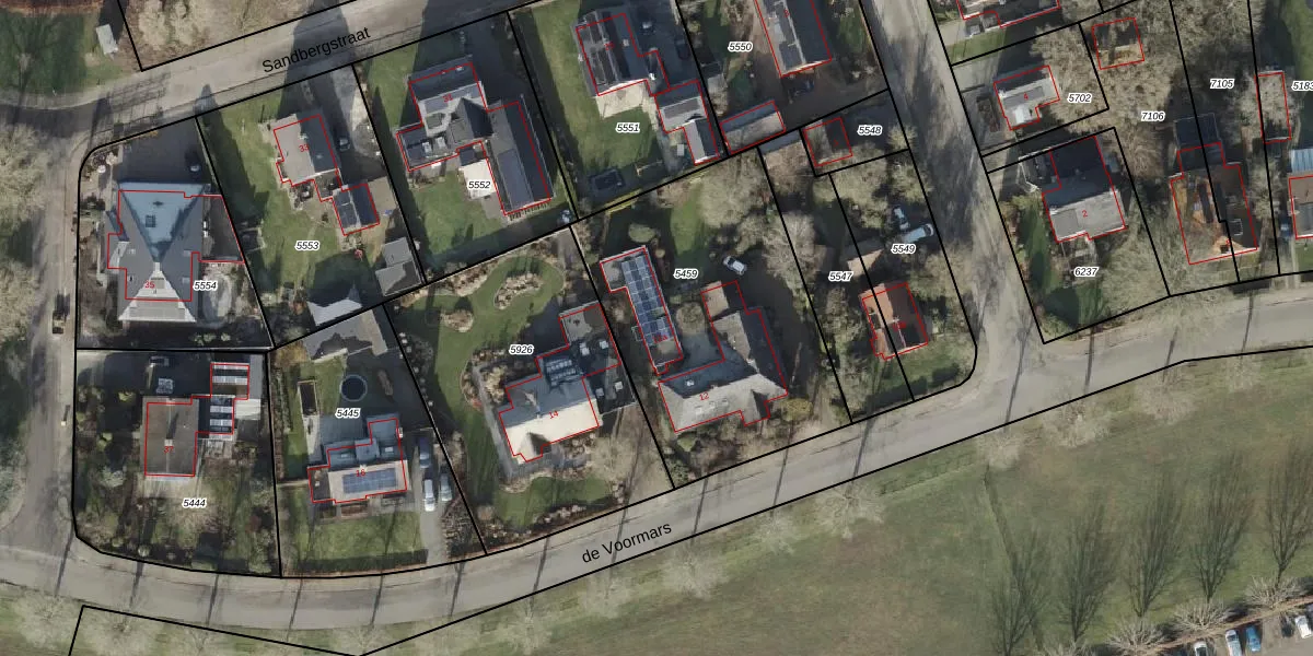 Het perceel waarop de Voormars 12-a staat heeft een oppervlakte van 1317 m². Dit is een zeer groot perceel. De perceeloppervlakte wordt geregistreerd door het Kadaster. Gedetailleerde informatie over de maten van dit perceel kunt u vinden in het rapport Kadastrale kaart met maatvoering van de Voormars 12-a.
