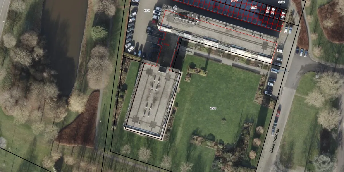 Het perceel waarop Dikkersstraat 1-101 staat heeft een oppervlakte van 4065 m². Dit is een zeer groot perceel. De perceeloppervlakte wordt geregistreerd door het Kadaster. Gedetailleerde informatie over de maten van dit perceel kunt u vinden in het rapport Kadastrale kaart met maatvoering van Dikkersstraat 1-101.