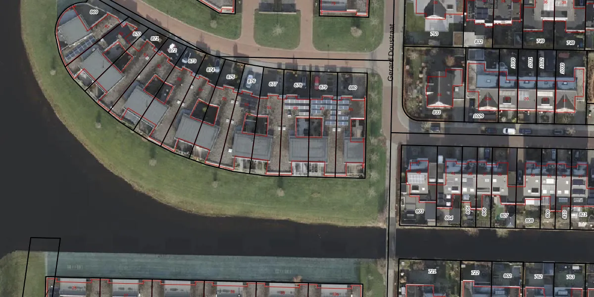 Het perceel waarop Gerard Doustraat 49 staat heeft een oppervlakte van 332 m². Dit is een groot perceel. De perceeloppervlakte wordt geregistreerd door het Kadaster. Gedetailleerde informatie over de maten van dit perceel kunt u vinden in het rapport Kadastrale kaart met maatvoering van Gerard Doustraat 49.