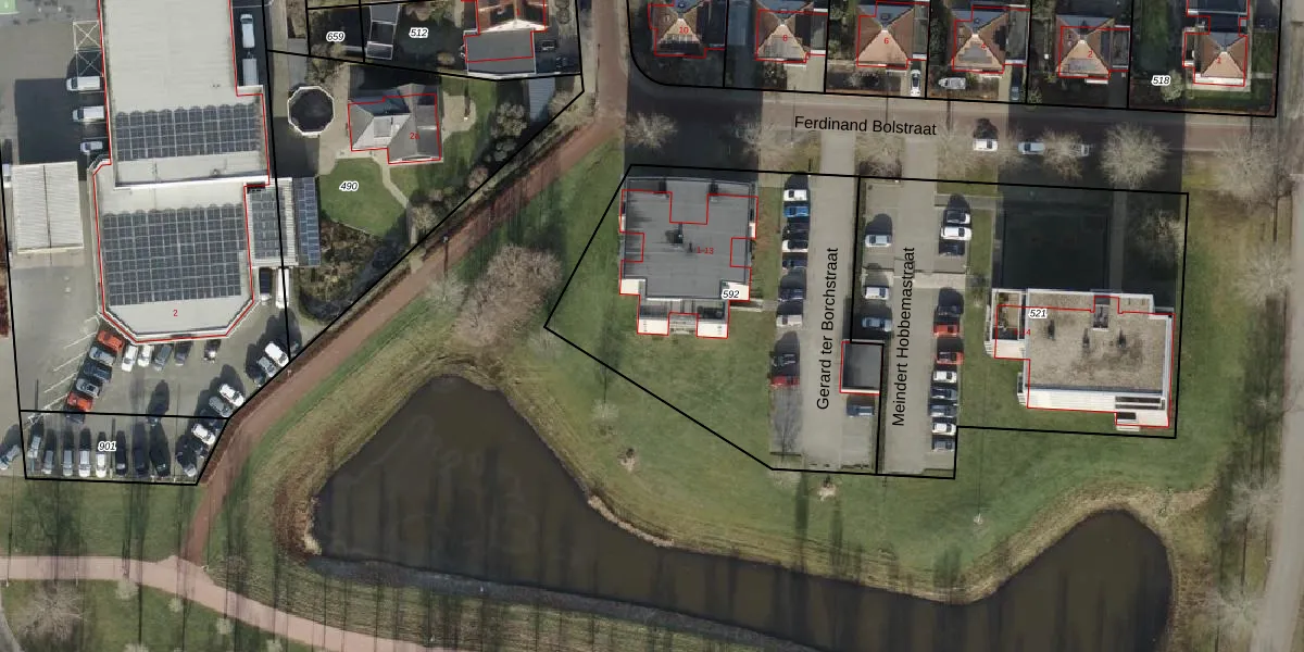 Het perceel waarop Gerard ter Borchstraat 12 staat heeft een oppervlakte van 1725 m². Dit is een zeer groot perceel. De perceeloppervlakte wordt geregistreerd door het Kadaster. Gedetailleerde informatie over de maten van dit perceel kunt u vinden in het rapport Kadastrale kaart met maatvoering van Gerard ter Borchstraat 12.