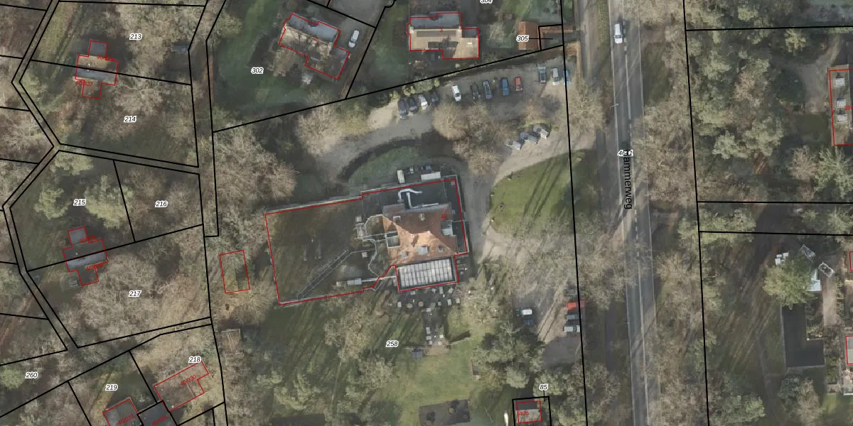 Het perceel waarop Hammerweg 40 staat heeft een oppervlakte van 7773 m². Dit is een zeer groot perceel. De perceeloppervlakte wordt geregistreerd door het Kadaster. Gedetailleerde informatie over de maten van dit perceel kunt u vinden in het rapport Kadastrale kaart met maatvoering van Hammerweg 40.