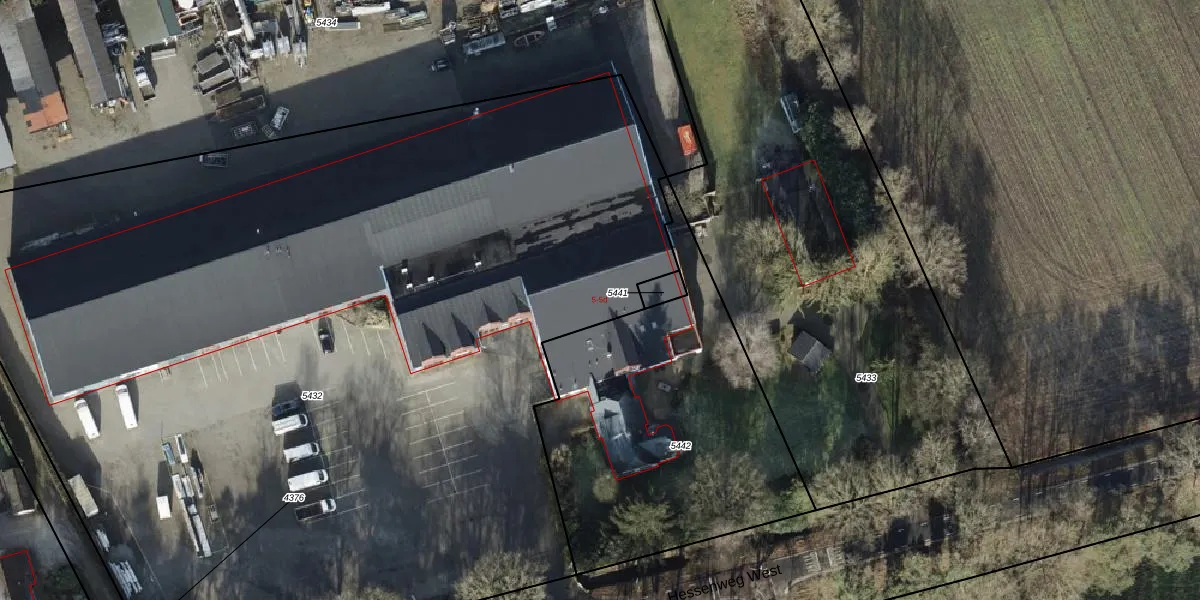 Het perceel waarop Hessenweg West 5-b staat heeft een oppervlakte van 7815 m². Dit is een zeer groot perceel. De perceeloppervlakte wordt geregistreerd door het Kadaster. Gedetailleerde informatie over de maten van dit perceel kunt u vinden in het rapport Kadastrale kaart met maatvoering van Hessenweg West 5-b.